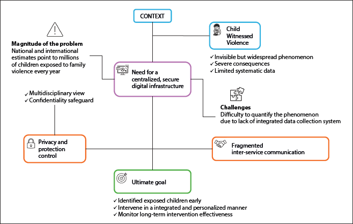 Figure 1 presents a conceptual framework outlining the multifaceted nature of this public health issue. It illustrates how the often-invisible, yet widespread phenomenon of child-witnessed violence contributes to a complex network of interconnected problems that require coordinated, multidisciplinary strategies for early identification and integrated intervention.